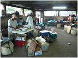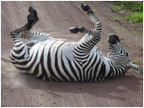 Vier Tage bleiben uns noch bis zum Abflug, also wird überlegt! Ein Tag Ruhe, zwei Tage Safari, ein Tag 'Moshi City'. So machen wir es! Beim ausgedehnten Frühstück mit Madeleine am nächsten Morgen besprechen wir alles mit ihr. Sie zeigt sich sehr flexibel und organisiert uns eine Zwei-Tages-Safari für die nächsten Tage. Den heutigen Tag verbringen wir hier im 'Basislager', relaxen, genießen die Sonne ... halt etwas 'ADL' (activities of daily life). Gegen 17.00 Uhr kommt Alex für die Besprechung der Safari. Abends fahren wir per Taxi in die Stadt zum 'Indoitaliano', ein Restaurant, welches indische und italienische Spezialitäten anbietet. Wir wollen jetzt, nach der Bergtour, einfach eine Pizza essen und diese schmeckt auch sehr gut. Per Taxi geht es wieder in die Bleibe. Abends geht es wieder auf die Terrasse und genießen ... eine Cola, man glaubt garnicht ... Sucht! Am nächsten Morgen müssen wir früh aufstehen. Nach dem Frühstück lernen wir unseren Guide Salè und den Koch Nelson kennen, unsere beiden Begleiter für die nächsten zwei Tage. Die Fahrt findet wieder in einem 'Jeep' mit offenem Dach statt. Dieser wird mit dem Nötigsten beladen und um 09.00 Uhr starten wir zur Safari nach "Lake Manyara", morgen zum "Ngorongorokrater". Die Fahrt dauert etwas länger. Es geht durch Arusha durch und gegen Mittag sind wir am Park. Kurze Anmeldung durch Salè und die nächsten Stunden gehören uns und der Natur. Wie im "Arusha Nationalpark" lassen die ganzen Tiere nicht lange auf sich warten. Affen, Paviane, Zebras, Büffel, Gnus, Hippos, Impalas, diverse Vögel etc. alles in Mengen und friedlich am Grasen oder Schlafen. Den ganzen Nachmittag fahren wir umher, fotografieren, staunen und genießen die Natur. Am frühen Abend verlassen wir den Park und es geht weiter zum "Ngorongoro Krater" wo wir auch übernachten. Hier sind die Parks übrigens nirgendwo eingezäunt, damit die Tiere sich frei in der Natur bewegen können. Ca. 100 m vor dem "Simba Camp", unsere Bleibe heute Nacht, entdecken wir zwei Hyänen ... übrigens, hatte ich es schon erwähnt? Die Parks sind hier nirgendwo eingezäunt, damit ...!? Na gut! Das Zelt wird aufgeschlagen und Nelson bereitet in einer 'Großküche' mit vielen Feuerstellen das Abendessen vor. Das Abendessen schmeckt wieder sehr gut. Dieses wird in einem großen überdachten Raum eingenommen, wo alle Safaritouristen sich zum Abendessen einfinden. Jeder Tisch ist anders gedeckt, unser Tisch mit Weingläsern und Servietten drin. Leichte Vorahnung, es gibt heute Wein. Chrissi gönnt sich ein Gläschen. Mit den beiden englischen Damen am Nachbartisch kommen wir in's Gespräch, auch diese trinken gerne Wein und spielen Karten. Karten? Selbstverständlich verheimliche ich meinen Beruf, hole Karten und bringe den beiden 'Mau-Mau' bei. Nach ein paar Runden Karten verabschieden wir uns, der nächste Tag wird lang. Einer der gefährlichsten Tiere für den Menschen ist der Büffel. Die meisten Angriffe durch Tiere mit Todesfolge passieren durch Büffel. Also werden wir darauf hingewiesen, nachts, wenn man mal 'Sterne gucken' muss o. ä., sich genau umzuschauen und die Umgebung abzuleuchten. Das "Simba Camp" besteht aus einer riesigen, saftigen Grasfläche, die gerne nachts von Büffeln zum Grasen aufgesucht wird. Daher auch die ganzen auffälligen 'Fladen' zwischen den Zelten! Es ist kurz nach Mitternacht! Wir haben lediglich das Mosquitonetz unten und die Hauptklappe des Zeltes über das Dach geschlagen. Durch einen heftigen Windstoß knallt diese Klappe runter und ich werde wach. Na gut ... Zeltklappe!? Doch höre ich noch andere Geräusche ... tiefes Stampfen, Schnaufen und das Reißen von Gras ... ein Büffel direkt neben unserem Zelt. Tief durchatmen, als wäre nichts gewesen. Am nächsten Morgen treten wir vorsichtig raus, um nicht in die frische Flade direkt neben unserem Zelt zu treten. Waschen, Frühstück, Packen. Wir wollen früh los, um die Vielfallt der Tiere früh morgens an den Wasserstellen zu sehen. Der Ngorongoro Krater ist sehr tief und riesengroß. Die Fahrt mit dem Jeep geht sehr holperig über den Kraterrand hinweg in die riesige Ebene, die von hier oben gähnend leer aussieht ... eigentlich wollten wir die 'big five' sehen, die 5 gefährlichten Tiere Afrikas ... Leopard, Löwe, Elefant, Nashorn und Büffel (bisher nur gehört!). Je weiter wir in den Krater reinkommen, um so mehr eröffnet sich eine riesige Vielfalt an Tieren. Wir sind kaum unten als rechts 2 Geparden / Cheetahs die schattenspendende Schirmakazie (fast Klischee) aufsuchen. Die beiden haben aber nicht sehr lange was davon, ein Zebra und ein Büffel verscheuchen die beiden Geparden, sehr zum Leidwesen eines Massaibewohners, der jetzt die 'Beine in die Hand nimmt' und den Berg hochrennt. Was wir auch nicht wussten ist, dass die Massai hier frei wohnen dürfen. Im Krater befinden sich keine Siedlungen der Massai, diese befinden sich eher am Kraterrand. Er hat Glück, die Geparden sind recht träge ... noch! Während des ganzen Tages fahren wir umher und entdecken ständig neue Tiere, die man, wenn überhaupt, nur vom Zoo oder aus Büchern kennt: Zebras und Gnus in riesigen Mengen, Impalas, Büffel, Elefanten, 2 Nashörner in der Ferne, Flamingos, Ibis, Hammerkopfvögel, Warzenschweine, Schakale, Hyänen usw. usw. Von den 'big five' bekommen wir lediglich den Leoparden nicht zu sehen. Dieser versteckt sich gerne in den umliegenden Wäldern. Ein kleiner Tipp: Da wo 5 und mehr 'Jeeps' stehen sind die Löwen! Seltsam ist hier die 'Auffassung der tanzanischen StVO' ... vor unserem Jeep überquert ein 'Zebrastreifen' die Straße nur um sich dann wieder quer auf die Straße zu legen, wo es ja auch eigentlich hingehört - wieder 'im Dienst' ... siehe Bild ;-) Den ganzen Tag erleben wir unzählige Tiere auf diesem einen Fleck Erde, ein wahres Naturschauspiel und daher 'UNESCO Weltnaturerbe'. Am späteren Nachmittag verlassen wir den Krater und fahren hoch zum Camp. Hier hat Nelson bereit